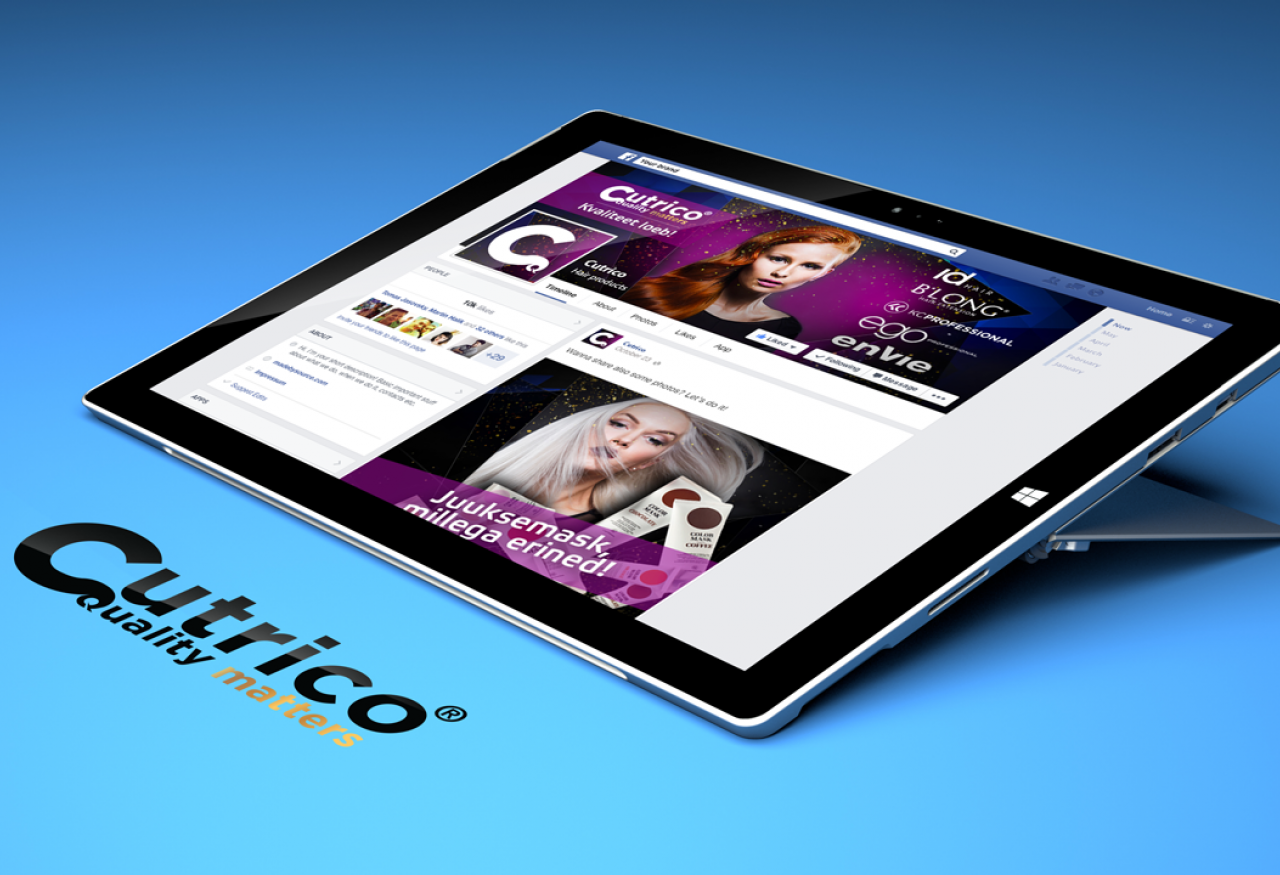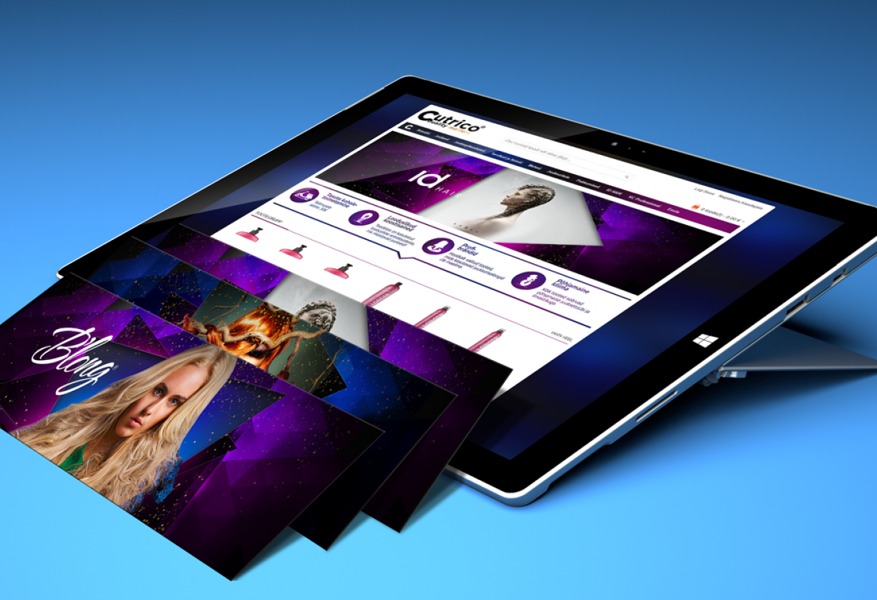 Cutrico Hair's new and improved over-all branding and concept including e-commrce web design, roll-ups, business cards, Facebook branding, sliders etc.