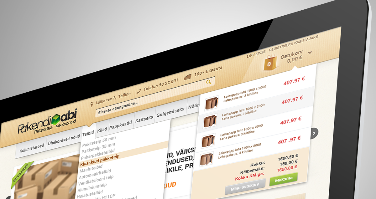 Pakendiabi.ee provides all you-can-think packaging solutions. I created a custom web design interface along with a logo to go with that.